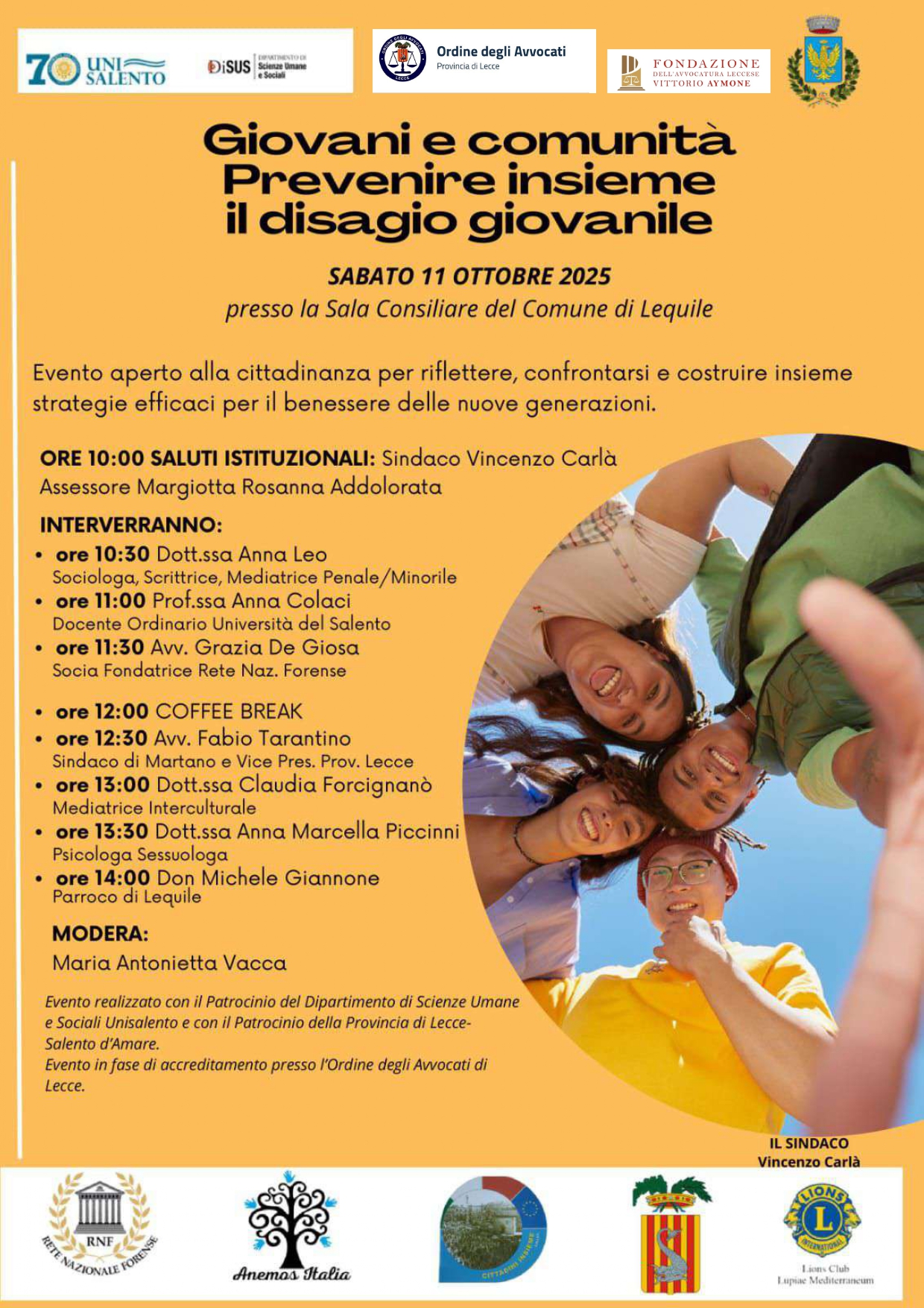 L'EVENTO E' ACCREDITATO DAL COA LECCE PER N. 2 CREDITI FORMATIVI IN MATERIA ORDINARIA, PER N. 100 AVVOCATI.