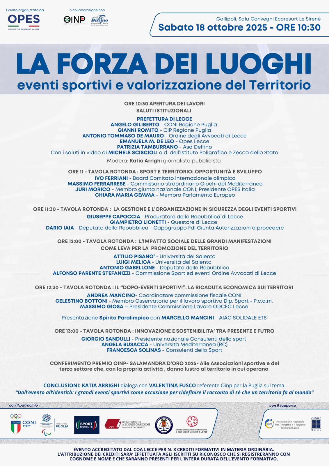 L'EVENTO E' ACCREDITATO DAL COA LECCE PER N. 3 CREDITI FORMATIVI IN MATERIA ORDINARIA, PER N. 50 AVVOCATI. ISCRIZIONE SU RICONOSCO.