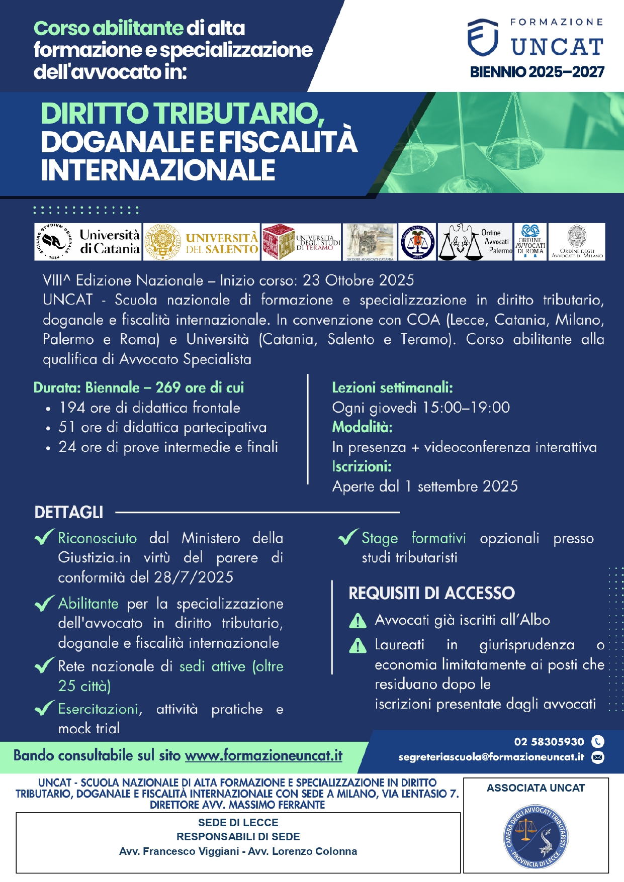 tributario, doganale e della fiscalità internazionale” per il biennio 2025/2027.